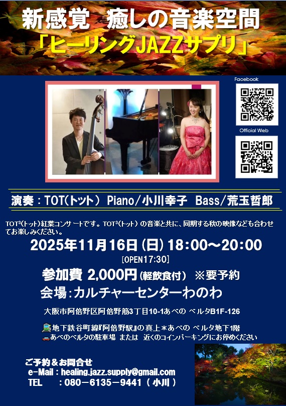お問合せとご予約は、healing.jazz.supply@gmail.com (小川)まで