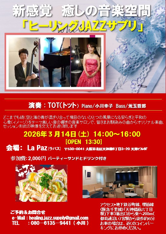 お問い合わせとご予約は、healing.jazz.supply@gmail.comまで