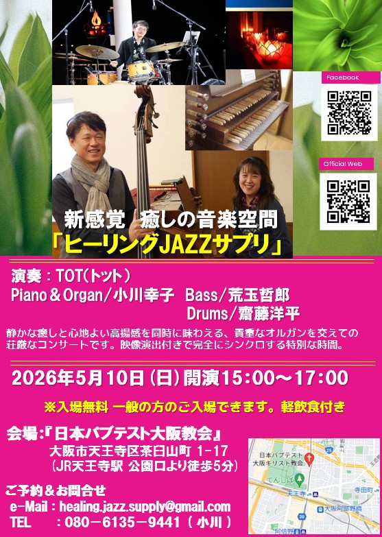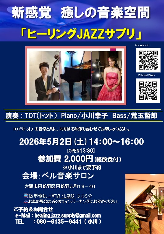 お問合せやご予約:healing.jazz.supply@gmail.com (小川)まで